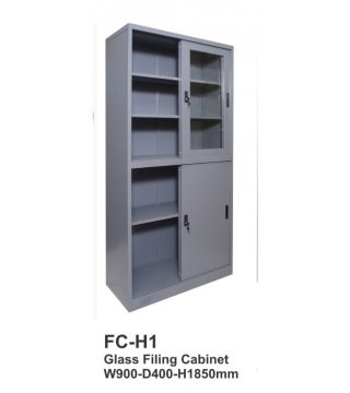 Lemari arsip tiger pintu kaca sliding / geser (atas), Pintu plat sliding / geser (bawah)